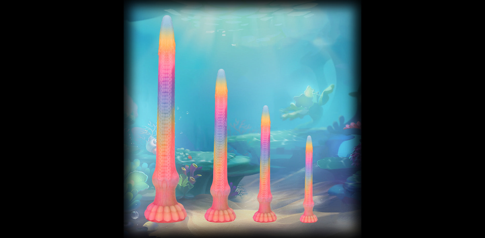 The Tentacle Glow-in-the-dark Dildo features a long, tapered shaft inspired by organic tentacle shapes. Its textured surface with subtle suction-style detailing creates stimulating sensations during use while maintaining a smooth, comfortable glide. The pronounced knot near the base adds a fulfilling sense of security and fullness once accommodated.