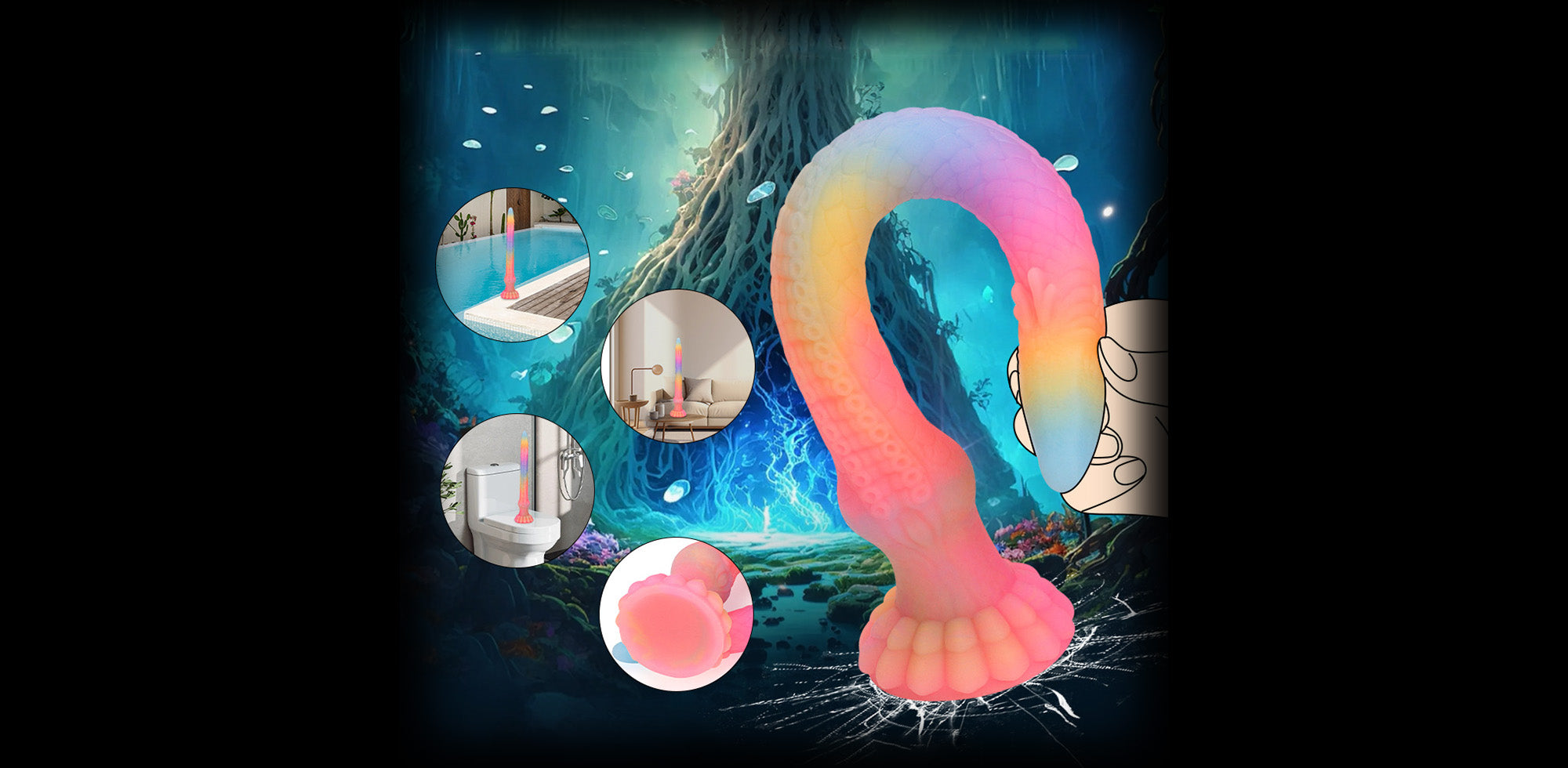 Designed for visual excitement, the Tentacle Glow-in-the-dark Dildo absorbs light from sunlight or lamps and emits a soft glow in darker settings, adding a playful and immersive fantasy element to intimate moments.