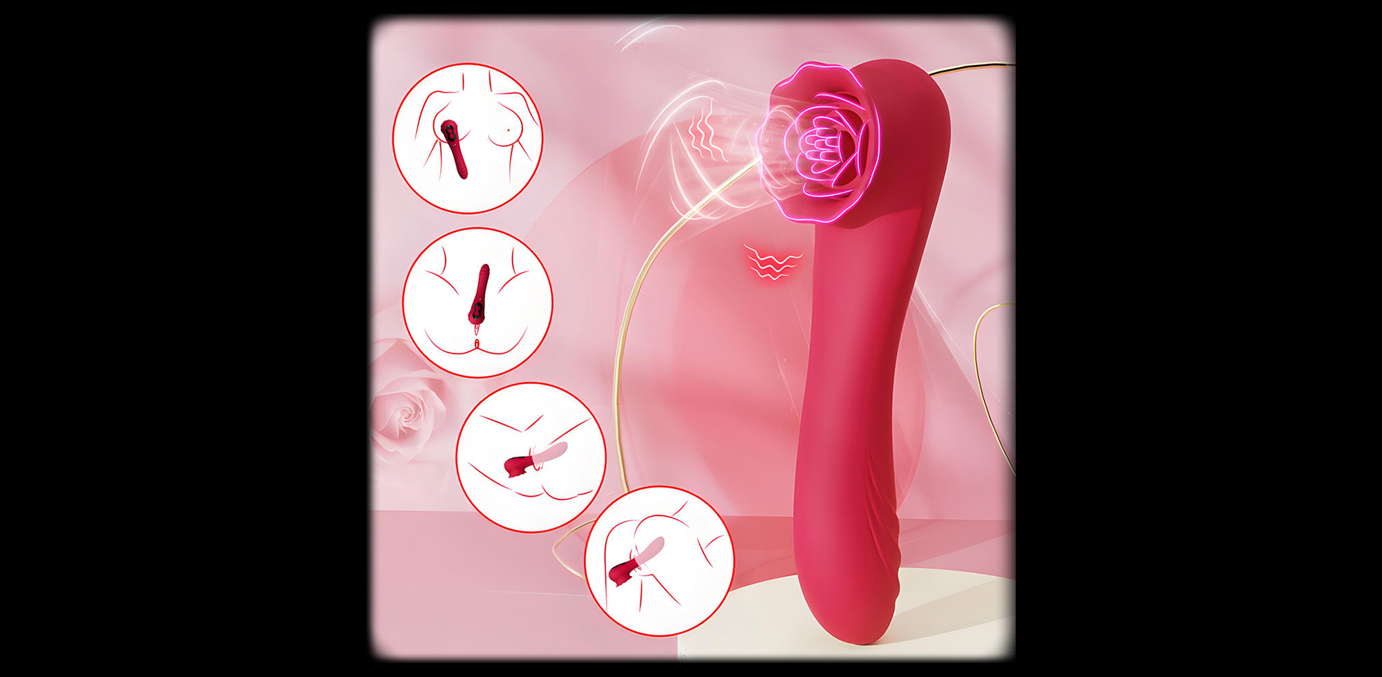 This versatile design includes a long, slim end that doubles as a handle or vibrating dildo, allowing flexible use for clitoral, nipple, G-spot, or anal stimulation. Both the rose head and the extended end operate independently, giving you full control over your experience.