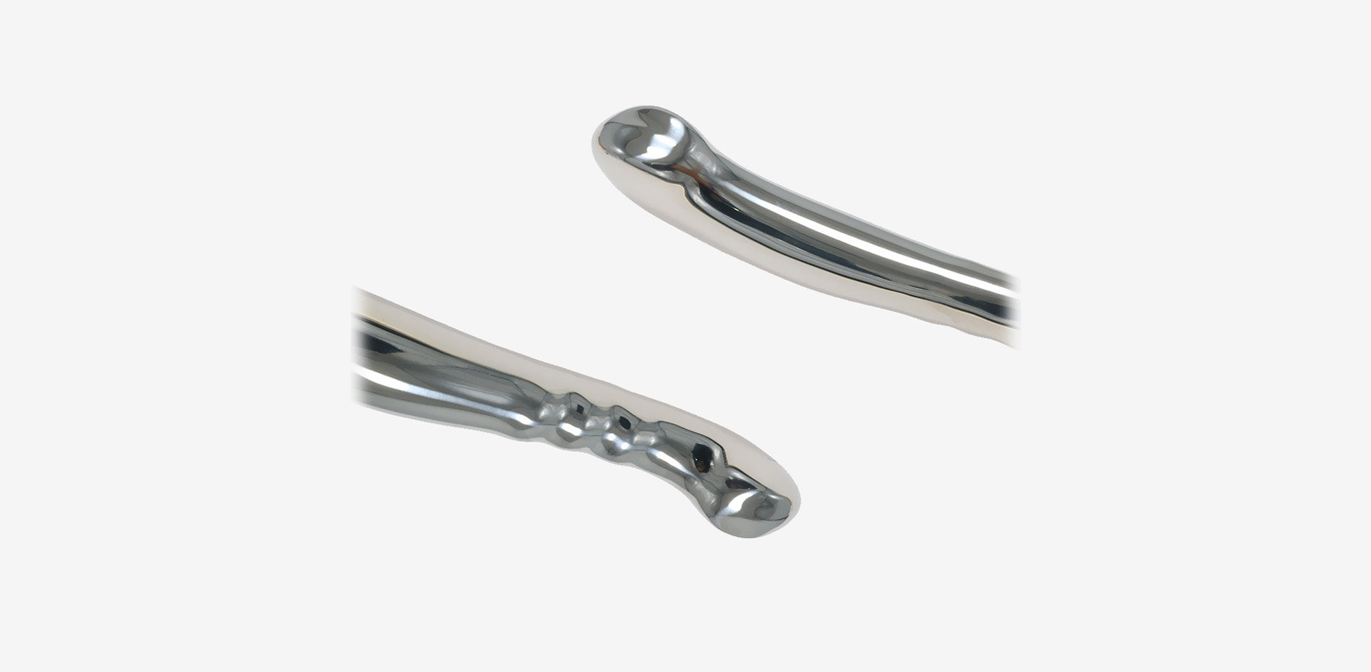 This Dual-Ended Spoon Stainless Steel Wand features two bulbous, shallow spoon-shaped ends connected by a smooth curved handle for versatile stimulation.