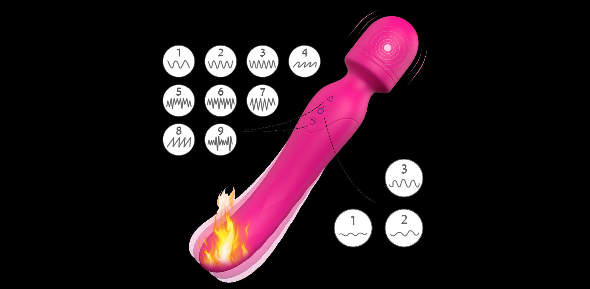 Powered by two strong motors, each end of the Iris Heated Wand Vibrator can be controlled independently. Both ends provide 9 vibration frequencies and 3 intensity levels, allowing fully customised stimulation to suit different moods and sensitivity levels.