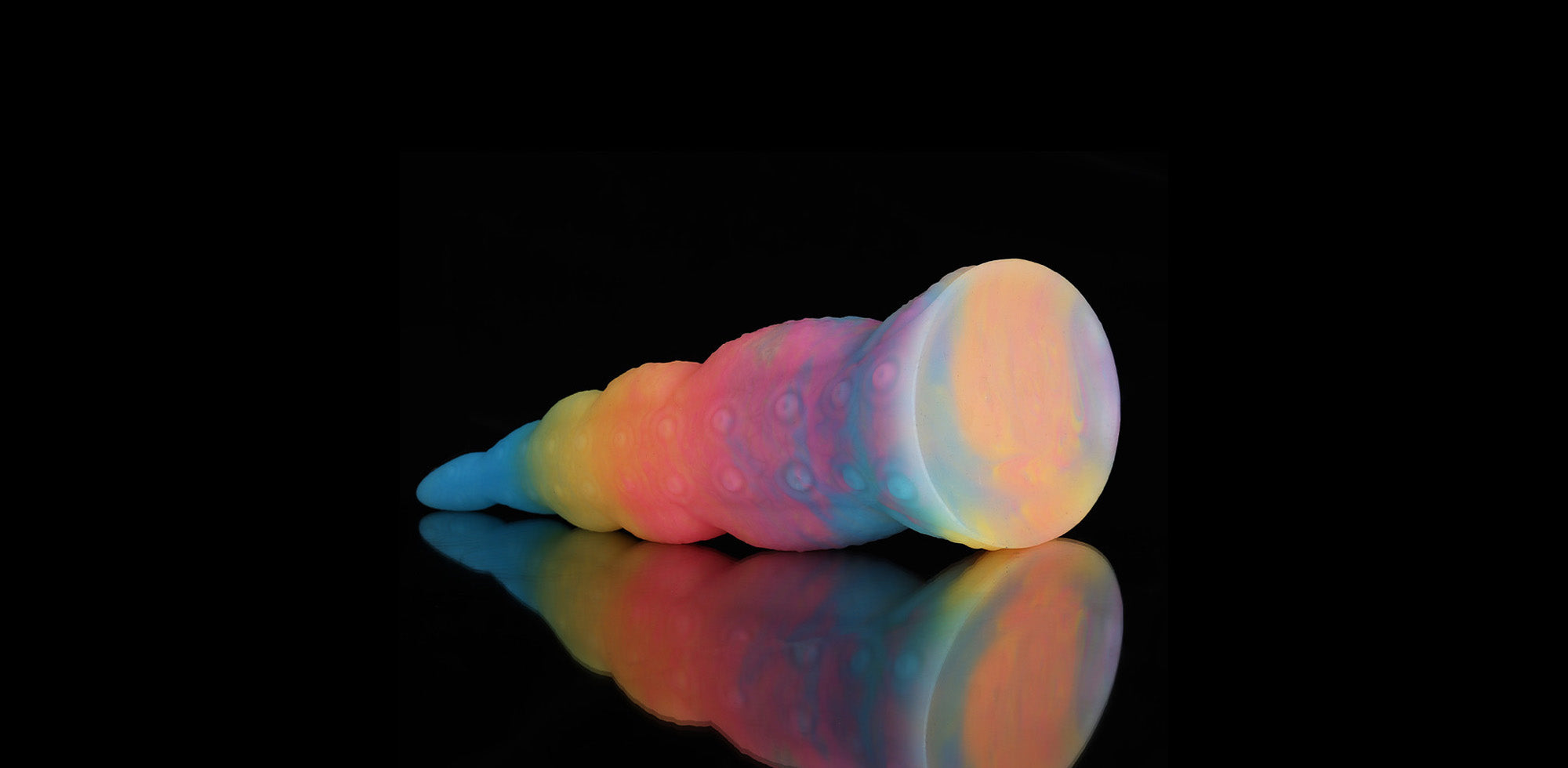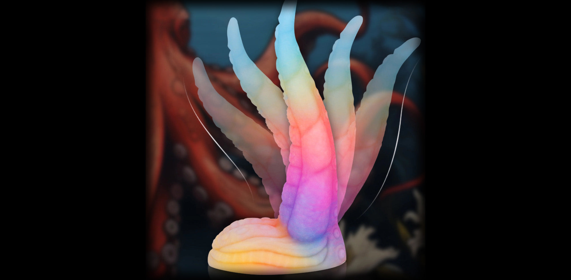 The Octopus Tail Luminous Dildo features a sculpted tentacle shape with detailed suction textures and a flowing, curved silhouette. Its vibrant pastel gradient enhances the fantasy aesthetic, while the tapered tip and textured shaft provide enhanced internal stimulation.