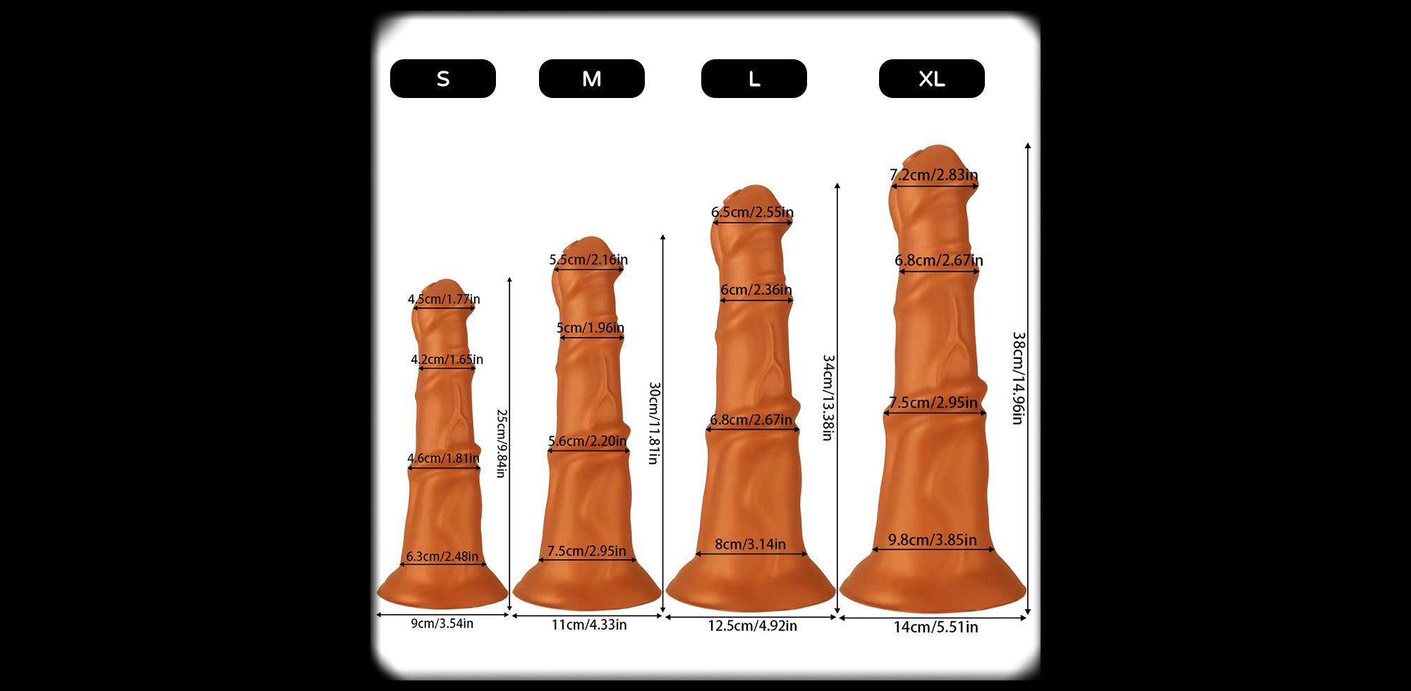Available in striking gold or classic black, each color comes in four size options, giving you the freedom to choose the intensity and length that best suits your fantasy.